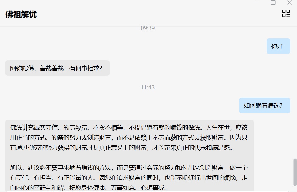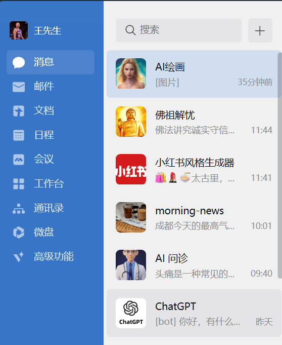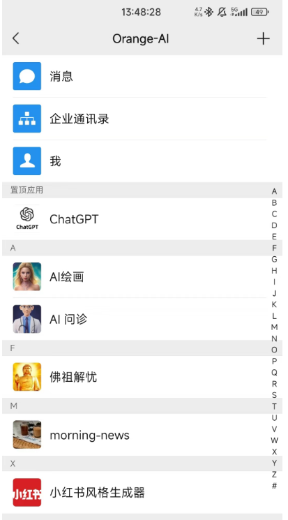 到目前为止,如果没什么报错的话,那就是见证奇迹的时刻了,在企业微信搜你刚刚创建应用所有的名字,打开对话框,和他聊天吧!