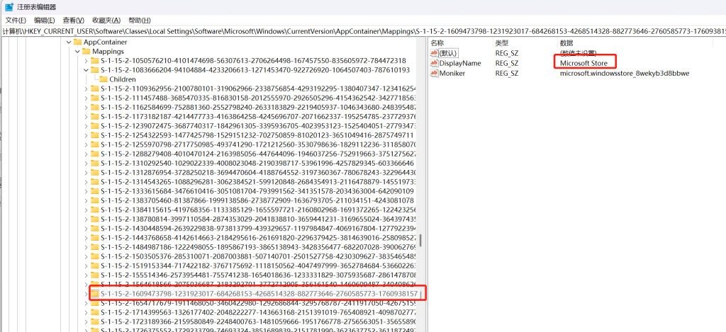 \HKEY_CURRENT_USER\Software\Classes\Local Settings\Software\Microsoft\Windows\CurrentVersion\AppContainer\Mappings\